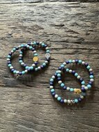 Armband van acryl kralen 6 mm met een bedel van metaal DQ in het zilver of goud