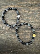 Natuursteen kralen labradoriet 8mm Anthracite mat, met een zilveren of gouden levensboom