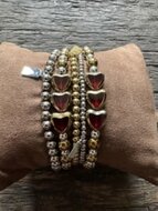 AVL Spread the love armband   Armband van hematite kralen 6 en 4 mm zilver & goud kralen.de hartje zijn glaskralen   * let