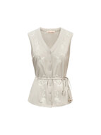 Een nieuw model in de collectie van Triple Nine! Deze travelblouse van Triple Nine zonder mouwen heeft prachtige geborduurde details verwerkt vlakbij de kraag.