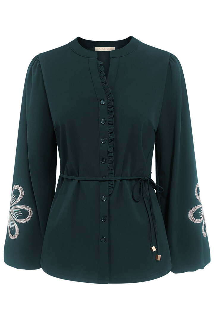 Blouse flower embroidery with cord Velvet Green Nine BLS5923