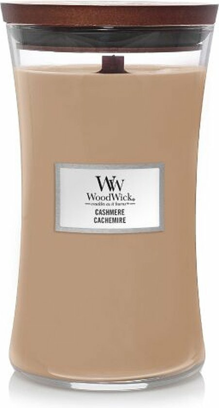 Woodwick Cashmere is een verrassende combinatie van houtige geuren waaronder sandelhout, tonkaboon en kweepeer.