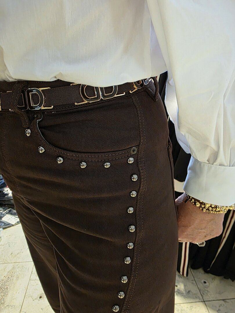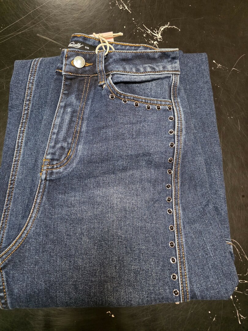 Deze wijde broek van denim materiaal in de kleur BLAUW heeft een on-trend design wat 'm absoluut fashionable maakt. De studs vormen een leuk detail en maken de jeans trendy