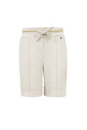 De stevige Travelstof voelt aan als een tweede huid en zorgt ervoor dat je figuur prachtig wordt geaccentueerd. De broek sluit perfect aan bij de heupen en billen, terwijl de korte pijpen recht uitlopen tot halverwege het bovenbeen met omslag. De elastische tailleband met gouden bies en trekkoord draagt bij aan het comfort, en de steekzakken aan de voorkant en zakken aan de achterkant geven de broek een stijlvolle en praktische uitstraling. Ook brengt de naad op het voorpand een optisch slank effect.