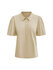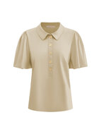 Een nieuw model in de collectie van Triple Nine. Een top van travelstof ronde hals welke open is te knopen als v-hals met de goudkleurige knopen.