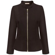 Kort jasje met rand aan de onderkant. Het jackje heeft steekzakken en een ritssluiting. Deze twill stof is een stevig geweven stof die comfortabel zit en chique oogt.