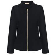Kort jasje met rand aan de onderkant. Het jackje heeft steekzakken en een ritssluiting. Deze twill stof is een stevig geweven stof die comfortabel zit en chique oogt. Draag de jas met een van de Triple Nine punto broeken of rok voor de complete look! Het artikel valt goed op maat S = 36.