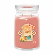 Yankee Candle Signature Large Jar Capri Glow. Yankee Candle Signature Large Jar Capri Glow. De nieuwe Signature Large Jar heeft een verfrissende nieuwe kijk op onze iconische Jar-vorm en is ontworpen om van de heerlijke Yankee Candle geuren te genieten.Deze Jar is gemaakt van gladde sojawasmix die zorgt voor een schone, consistente verbranding.De lont is gemaakt van 100% natuurlijke vezels, grondig getest voor de best mogelijke verbranding.De Large Jar weegt 567 gram, heeft twee lonten en brandt 60 – 90 uur. Het formaat is 9.3cm x 15.7cm. Yankee Candle Capri Glow. Capri Glow is een bloemige geur .Geniet van de zomerse gloed van de zandstranden van Capri met geuren van zonovergoten amber, frangipani-bloemen en een vleugje citrus. ????Notes:Top: Citrus Zest, Bittere Sinaasappel, Mirte. Mid: Afrikaanse Sinaasappelbloesem, Neroli Bloesem, Frangipani. Basis: Zonovergoten Amber, Gebleekt Hout, Transparante Musk, Macadamia. Topnoot is de eerste indruk van de geur, middelnoot is het hoofdlichaam van de geur en de basis is de uiteindelijke indruk.