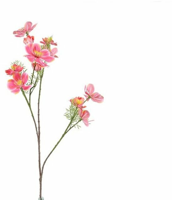 Breng een frisse en vrolijke sfeer in huis met deze prachtige extra lange Cosmos tak van Countryfield! Met haar royale lengte van maar liefst 105 cm en de overvloed aan speelse roze bloemetjes is dit een kunstbloem die meteen in het oog springt.